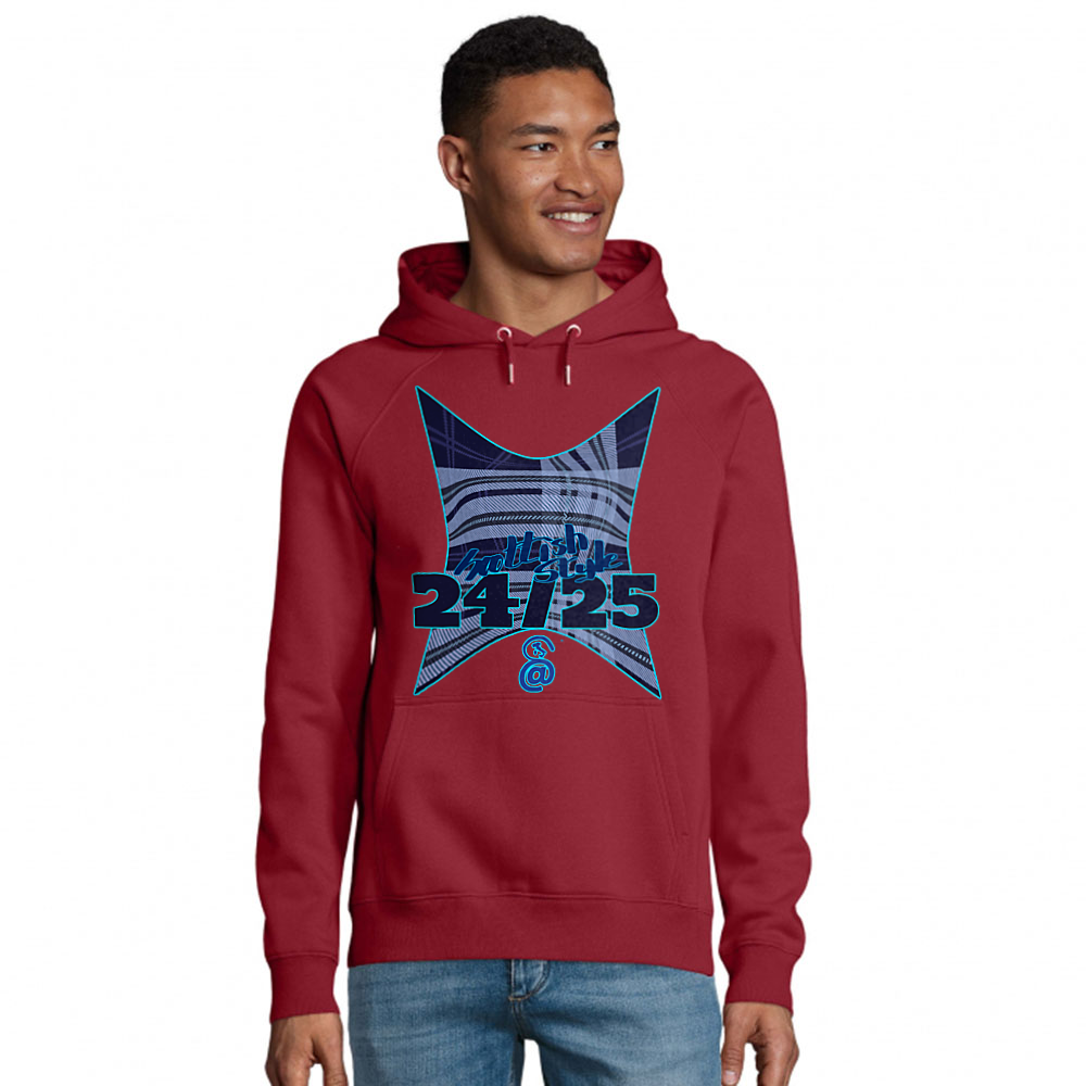 Resistente combinazione di cotone filato ad anelli e poliestere. Felpa unisex con cappuccio con interno raschiato, cappuccio foderato in jersey e orlo a costine elasticizzato in vita e all'estremita' delle maniche. Cordini con occhielli e stopper in metallo. Composta da 80% cotone proveniente da agricoltura biologica e 20% poliestere riciclato. Lavabile a 30 Gradi.